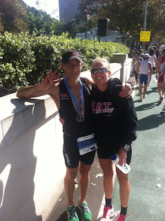 With the elites out of the way it was up to our age-group athletes come Sunday morning who had the opportunity to ride over the Sydney Harbour Bridge as part of their course, a privilege that not even our elites were granted! I must say it is a hard job keeping track of 10 athletes, all going off in different waves and I take my hat off to all of the spectators and especially Dan who does it at every race but thanks to modern technology I was able to track all of them on my phone and know exactly where I should stand to be able to cheer for them.